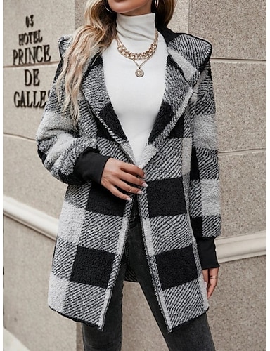 نسائي سترة الصوف جاكيت كاجوال مريح متنفس طباعة كاجوال منقوش عطلة شارع فضفاض مناسب للبس اليومي الأمام مفتوح طويلة طوي عادي كم طويل ملابس خارجية أسود وأبيض أسود وردي بلاشيهغ الربيع الخريف