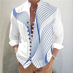 رجالي هندسي فن تجريدي قميص زر حتى القميص قميص بياقة واقفة كم طويل كاجوال الأماكن المفتوحة عطلة مناسب للبس اليومي الربيع الخريف اليوسفي طوق الفرقة الياقة طباعة ثلاثية الأبعاد قميص يشبه الكتان