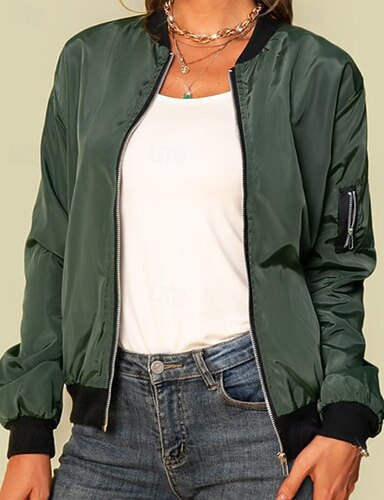 نسائي جاكيت كاجوال الدفء سريع جاف سحاب جيب أنيق موضة يوميا بسيط ورد عطلة فضفاض مناسب للبس اليومي مناسب للعطلات عادية طوق البيسبول عادي كم طويل ملابس خارجية ذهب أسود أسود أخضر داكن الربيع الخريف