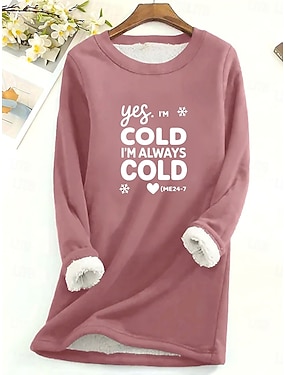 سويت شيرت نسائي، نعم أنا بارد، حروف جرافيكية، دافئ، غير رسمي، رقيق، كم طويل، رقبة دائرية، رقبة دائرية، قمم طويلة، كاجوال، وردي فاتح، أسود، وردي غامق، أزرق، ربيع، خريف، شتاء