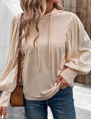 نسائي كنزة صوفية سهل أناقة الشارع كاجوال مريح كم طويل مع قبعة قمصان عادية شارع مناسب للعطلات مناسب للخارج رباط كاكي الربيع الخريف