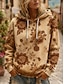 نسائي Pullover كنزات بقبعة ورد عتيق كاجوال كم طويل مع قبعة قمصان عادية مناسب للبس اليومي فضفاض رباط طباعة كاكي الربيع الخريف