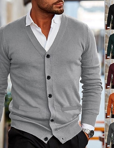 رجالي سترة سترة من صوف محبوك سترة قصيرة مضلع متماسكة قمصان عادية محبوك سهل V رقبة دافئ / تدفيئ الحديث المعاصر فضفاض مناسب للبس اليومي ملابس ربيع & الصيف أحمر الخمر أسود S M L