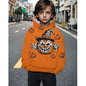 عيد الرعب للصبيان 3D قرع هوديي كم طويل الربيع الخريف موضة أناقة الشارع أطفال 4-12 سنة مع قبعة الأماكن المفتوحة فضفاض مناسب للبس اليومي عادي
