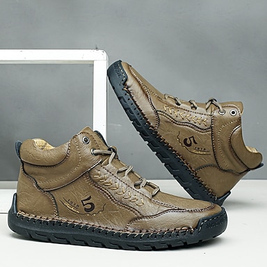رجالي كتب محبوك أحذية جلدية أحذية مصنوعة يدويا أحذية الراحة رياضي كلاسيكي كاجوال الأماكن المفتوحة مناسب للبس اليومي جلد المواد التركيبية الدفء مصنوع يدوي غير الانزلاق البوط القصير / بوط الكاحل