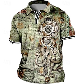 رجالي قياس كبير قميص بولو كبير وطويل القامة خريطة طوي طباعة كم قصير للربيع والصيف الرياضات موضة أناقة الشارع مصمم الأماكن المفتوحة شارع قمم