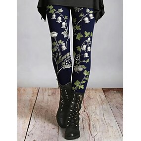 نسائي بنطلون طماق بنطال ضيق مريح العطلة عتيق أناقة الشارع مكتمل الطول ارتفاع متوسط ورد الرسم زهور مرونة الخصر طباعة مريح الخارج عالية المرونة الأماكن المفتوحة ملابس الشارع عطلة أسود الخريف الشتاء