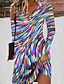فستان نسائي كاجوال تي شيرت فستان تي شيرت فستان منقط مخطط برقبة على شكل حرف V فستان متوسط الطول بأكمام قصيرة للعطلات الصيفية