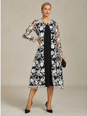 نسائي فستان ميدي فستان شيث فستان مع جاكيت أنيق كوكتيل فساتين شبه رسمية رسمي مناسب للحفلات ضيف حفل زفاف عادي ورد كم طويل رقبة عالية مدورة أسود الربيع الخريف الشتاء