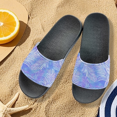 شبشب رجالي مطبوع عليه أوراق شجر زرقاء - طراز استوائي أنيق لقضاء العطلات على الشاطئ، والتنقل بين الجزر، وتناول العشاء على الشاطئ