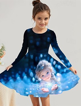الفتيات 3D ندفة ثلجية فستان كم طويل الصيف الربيع عطلة مناسب للبس اليومي مناسب للعطلات أميرة جميل حلو أطفال 4-12 سنة لباس غير رسمي فستان شكل حرف A طول الركبة عادي