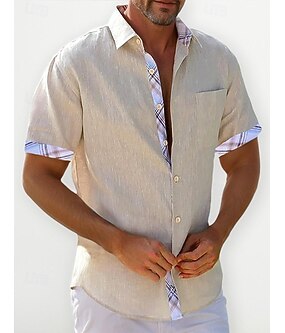 رجالي قميص كتان قميص صيفي ملابس الشاطئ زر حتى القميص سهل عطلة شاطئ أبيض وردي بلاشيهغ أزرق أخضر كم قصير مرتفعة للربيع والصيف ملابس أساسي