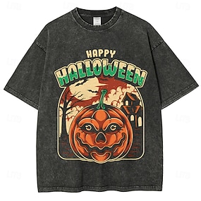 Halloween رجالي قرع أحرف تي شيرت قطن كم قصير رسم بياني قميص أسود أزرق البحرية أزرق تي شيرت مريح عيد ميلاد مناسب للبس اليومي ملابس مصمم الأزياء