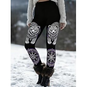 نسائي طماق بنطال ضيق مريح العطلة عتيق النمط العرقي مكتمل الطول خصر عالي الرسم دب طبع مريح قابل للبسط فضفاض مناسب للبس اليومي عطلة أسود الربيع الخريف الشتاء قياس نحيل