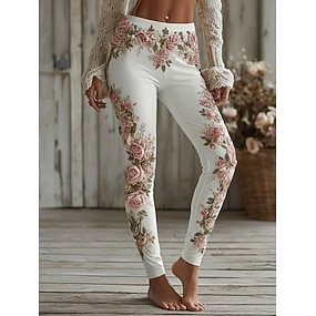 نسائي طماق بنطال ضيق مريح العطلة عتيق كاجوال مكتمل الطول خصر عالي ورد طبع مريح قابل للبسط فضفاض مناسب للبس اليومي عطلة أبيض الربيع الخريف الشتاء قياس نحيل