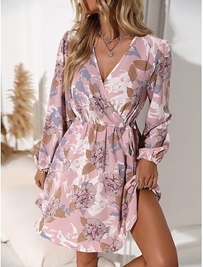 فستان ميني نسائي برقبة دائرية بأكمام طويلة فستان كاجوال فستان تي شيرت فستان تي فستان خطي نمط عادي زهور جرافيك تجريدي وردي أزرق برتقالي أخضر خريف شتاء