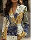 نسائي سترة الدفء مريح جيب Buttons طباعة يوميا كاجوال منقوش رسمي المكتب فضفاض صدر فردي عادية شق الصدر علوي عادي كم طويل ملابس خارجية أصفر الربيع الخريف