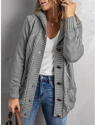 نسائي سترة مريح جيب كاجوال منقوش عطلة شارع مناسب للخارج عطلة نهاية الاسبوع طويلة طوي عادي كم طويل ملابس خارجية كاكي رمادي خفيف رمادي غامق الخريف الشتاء
