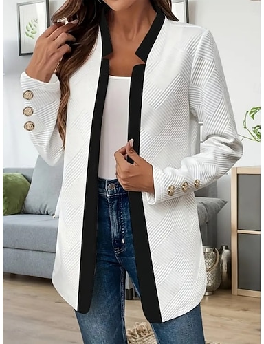 نسائي جاكيت كاجوال مريح متنفس بقع Buttons أنيق كاجوال سهل عطلة شارع فضفاض مناسب للبس اليومي الأمام مفتوح طويلة مرتفعة عادي كم طويل ملابس خارجية أسود أبيض الربيع الخريف