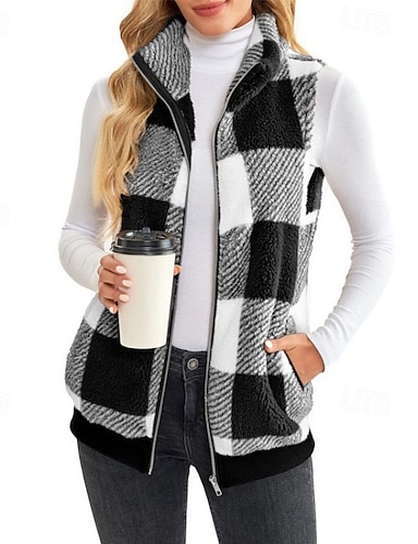 نسائي سترة مريح سحاب جيب كاجوال منقوش شارع مناسب للعطلات سحاب عادية طوي عادي بدون كم ملابس خارجية أسود أحمر أخضر الخريف الشتاء