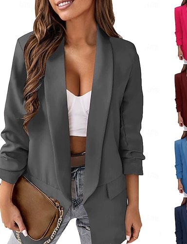 نسائي سترة مريح متنفس جيب كاجوال سهل المكتب شارع فضفاض مناسب للبس اليومي الأمام مفتوح عادية طوي عادي كم طويل ملابس خارجية نبيذ أزرق البحرية أزرق الصيف الخريف