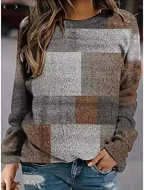 نسائي كنزة صوفية الرسم هندسي منقوش موضة كاجوال كم طويل رقبة دائرية قمصان عادية شارع مناسب للبس اليومي فضفاض طباعة أرجواني بني أخضر الخريف الشتاء