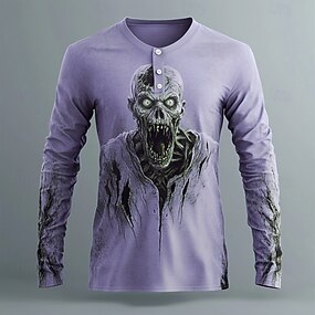 أزياء شتاء الرجال قميص هينلي مع رسومات زومبي بأكمام طويلة موضة لطيفة غير رسمية يومية عطلة خريف ربيع وخريف أخضر أحمر أزرق بنفسجي رمادي هينلي