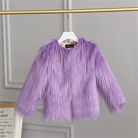 أطفال للفتيات معطف فرو صناعي لون الصلبة لطيف مدرسة معطف ملابس خارجية 4 سنوات + الخريف وردي بلاشيهغ أرجواني
