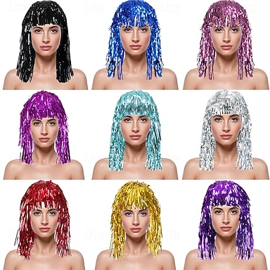 باروكة شعر معدنية لامعة للكرنفال &الحفلات - شعر مستعار لامع للنساء، شعر مستعار ملون من رقائق معدنية للمهرجانات، كرنفال كولونيا، الهالوين &أحداث الأزياء