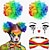 مجموعة أزياء المهرج بألوان قوس قزح - شعر مستعار أفريقي ملون، ملصقات وجه &ربطة عنق على شكل فراشة، مثالية للكرنفال وماردي غرا &حفلة تنكرية