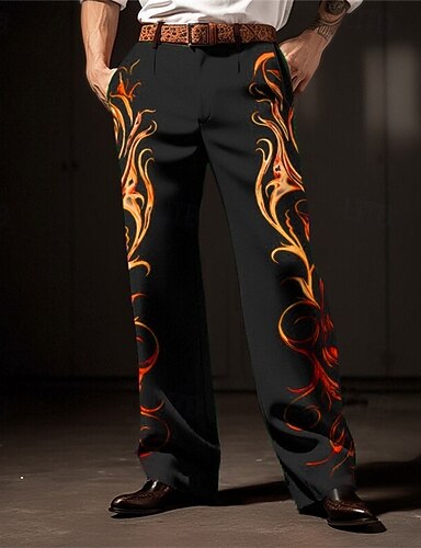 شعلة الأعمال التجارية ملخص رجالي طباعة ثلاثية الأبعاد بدلة سراويل الأماكن المفتوحة مناسب للبس اليومي ملابس الشارع بوليستر أصفر أحمر أزرق S M L الخصر متوسط مرونة بنطال