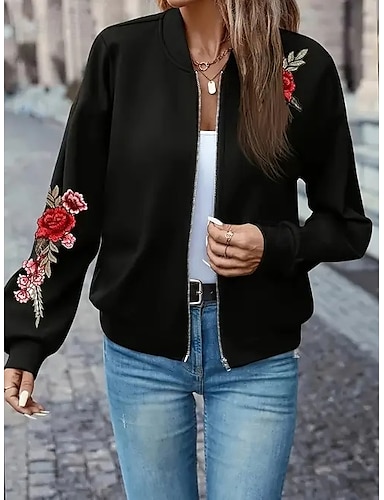 نسائي جاكيت كاجوال الدفء سريع جاف سحاب جيب أنيق موضة يوميا بسيط ورد عطلة فضفاض مناسب للبس اليومي مناسب للعطلات قصيرة طوق البيسبول عادي كم طويل ملابس خارجية أزرق أخضر الربيع الخريف