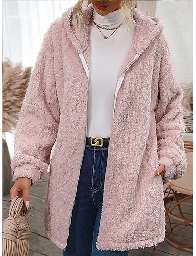 نسائي معطف شتوي سترة شيربا مريح متنفس سحاب جيب الحديث كاجوال سهل عطلة شارع فضفاض مناسب للبس اليومي صدر فردي عادية طوي عادي كم طويل ملابس خارجية أصفر وردي بلاشيهغ أخضر الربيع الخريف