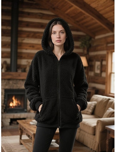 نسائي جاكيت شتوي معطف تيدي مريح متنفس سحاب جيب كاجوال سهل عطلة شارع فضفاض مناسب للبس اليومي سحاب عادية مرتفعة فضفاض صالح كم طويل ملابس خارجية أسود نبيذ أزرق الربيع الخريف