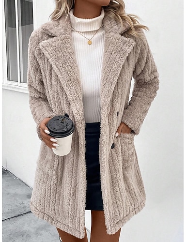 نسائي معطف شتوي سترة شيربا مريح متنفس جيب Buttons كاجوال سهل عطلة شارع فضفاض مناسب للبس اليومي صدر مزدوج عادية طوي عادي كم طويل ملابس خارجية كاكي الربيع الخريف
