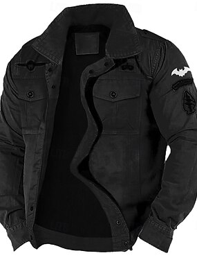 جاكيت عسكري رجالي مطرز من القطن مع أحزمة كتف وأكمام طويلة وياقة واقفة وجيوب متعددة ومعطف سترة شاحنة بطبعة خفاش ملابس خارجية تكتيكية
