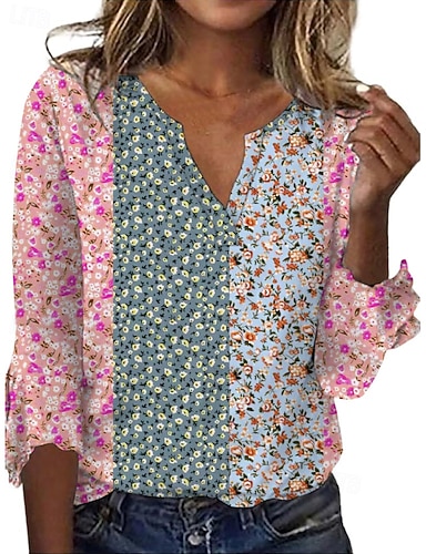 نسائي قمصان مستوحاة من الكتان تي شيرت ورد موضة كاجوال كم طويل V رقبة قمصان عادية مناسب للبس اليومي مناسب للخارج طباعة أحمر برتقالي بني أخضر الصيف