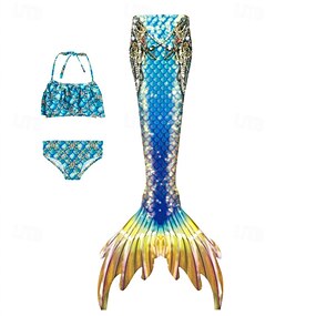 أطفال للفتيات ملابس السباحة حورية البحر ملابس السباحة مناسب للعطلات شاطئ موازين العطلة استوائي بدلة سباحة 4 سنوات + الصيف زهري فاتح أخضر فاتح