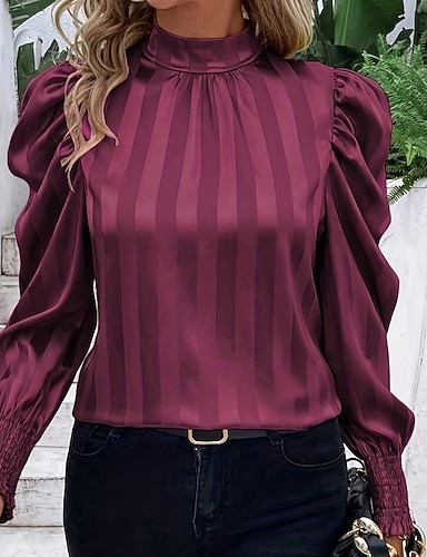 نسائي قميص بلوزة سهل أنيق كم طويل قبعة القميص قمصان عادية مناسب للعطلات مناسب للخارج مكشكش نبيذ الخريف الشتاء