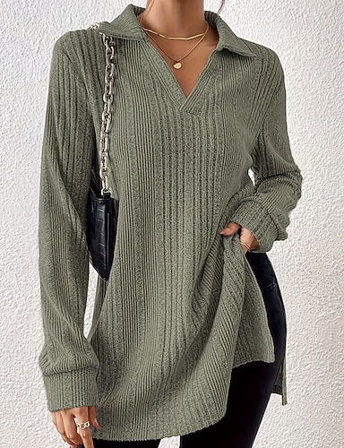 نسائي تي شيرت تي الأعلى سهل موضة الحديث كم قصير قبعة القميص قمصان عادية مناسب للبس اليومي مناسب للخارج أخضر داكن بني الخريف الشتاء