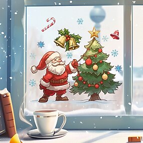 ملصقات حائط لعيد الميلاد على شكل شجرة عيد الميلاد سانتا كلوز الكرتونية ندفة الثلج القابلة للإزالة من الفينيل جدارية لحفلات العطلات وغرفة المعيشة وزجاج نافذة وباب وخلفية ديكور الحائط للمنزل
