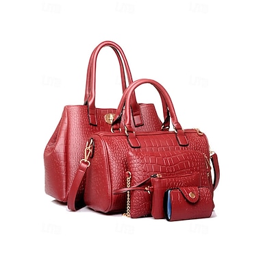 مجموعة حقيبة جلدية تمساح نسائية، تتضمن حقيبة كروس وحقيبة يد ومحفظة عملات معدنية، بتصميم أنيق وعصري، مناسبة للمناسبات الرسمية والاستخدام اليومي في العمل