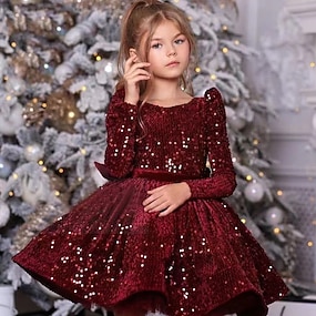 فستان حاملات الأزهار أطفال للفتيات فستان الأميرة أداء زفاف مناسب للحفلات أنيق جميل ترتر لون الصلبة بدون كم رقبة العمل أسود أحمر 4 سنوات +