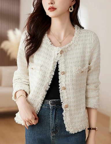 نسائي سترة مريح Buttons أنيق موضة الخارج سهل مناسب للخارج كاجوال / يومي عطلة نهاية الاسبوع كرديجا عادية Lapel عادي كم طويل ملابس خارجية أسود وأبيض أسود أبيض الربيع الخريف