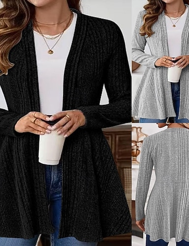 نسائي جاكيت كاجوال متنفس مريح المتضخم بسيط كاجوال سهل عطلة شارع فضفاض مناسب للبس اليومي الأمام مفتوح عادية مرتفعة عادي كم طويل ملابس خارجية أسود رمادي الخريف الشتاء