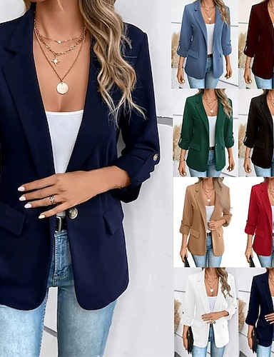نسائي سترة المكتب \ الوظيفة فضفاض العودة إلى المكتب الصيف الربيع الخريف معطف مرتفعة عادي سيدة كاجوال رسمي جاكتس كم طويل لون الصلبة زهري فاتح برتقالي أحمر أسود