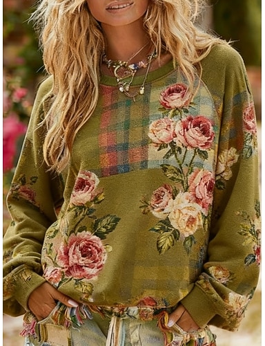 نسائي Pullover بلوزات ورد موضة أناقة الشارع كلاسيكي كم طويل رقبة عالية مدورة رقبة دائرية قمصان عادية مناسب للبس اليومي فضفاض طباعة وردي بلاشيهغ أخضر الربيع الخريف