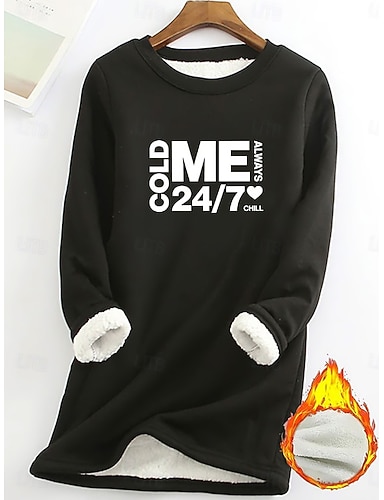 نسائي بيجامة سويت شيرت مبطنة بالصوف كنزة صوفية Pullover بلوزات أحرف دافئ أناقة الشارع كاجوال كم طويل رقبة عالية مدورة قمصان طويلة المنزل مناسب للبس اليومي فضفاض طباعة