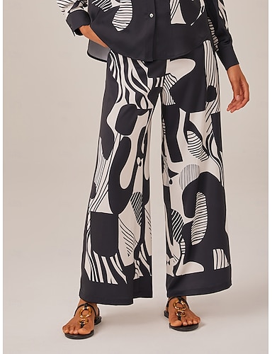 نسائي انثى فضفاض ساق عريضه بنطال واسع الساق مكتمل الطول ساتان أنيق بوهيميا العطلة فضفاض أسود الصيف XS S M