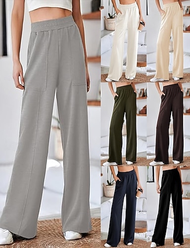 بنطلونات واسعة الساق نسائية ، بنطلونات فضفاضة ، موضة ، أساسية ، عادية ، بطول كامل ، خصر عالي ، لون سادة ، جيوب ، مريح ، ناعم ، مريح ، مرن ، خارجي ، شارع ، رمادي فاتح ، أسود ، أبيض ، أحمر ، صيفي ،